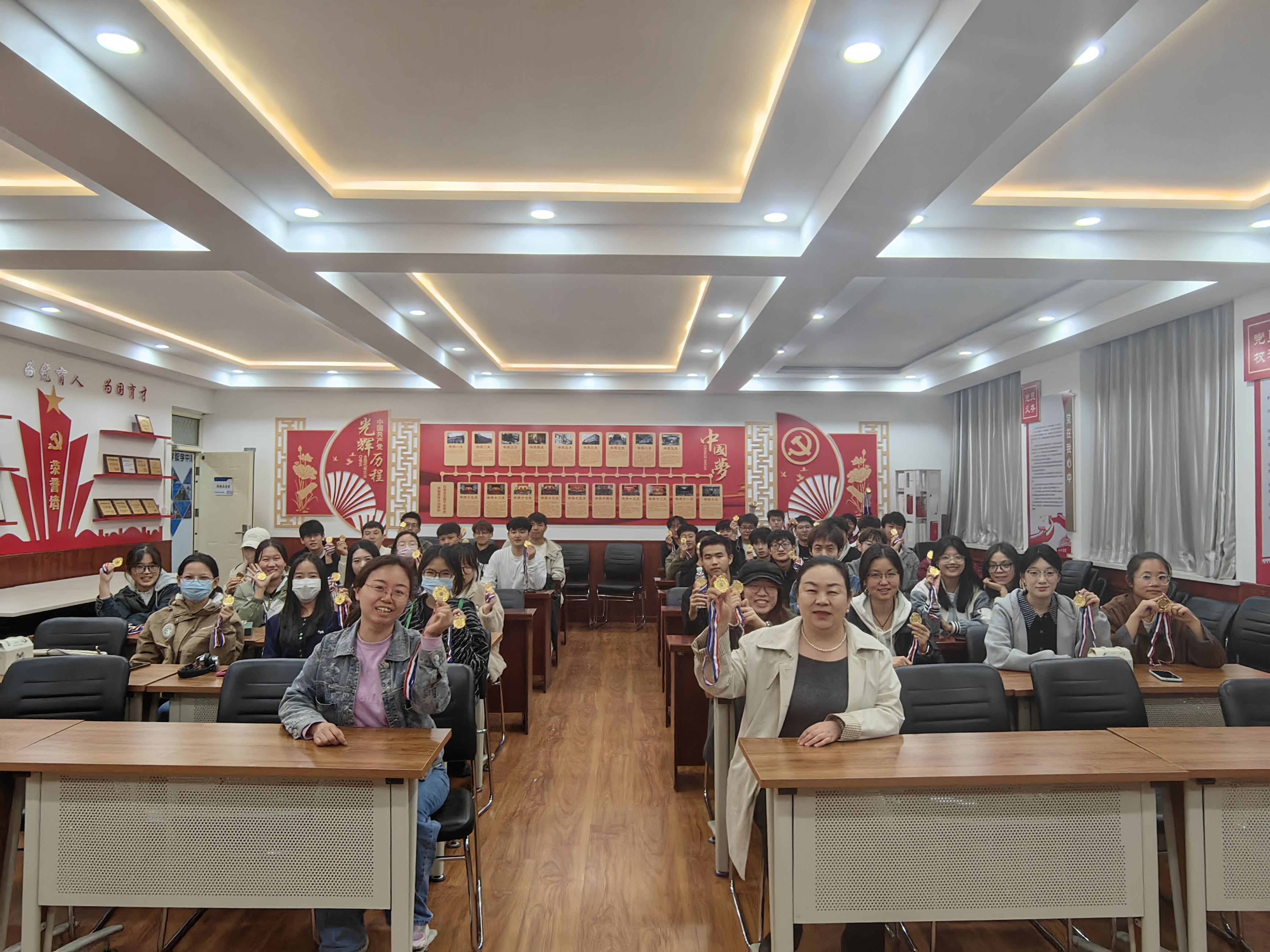 班会首先对在大二学年中表现优异的同学进行表彰,包括通过英语四六级考试、获得竞赛奖项以及学业进步显著的学生。全班同学均获颁专属奖章,以激励大家继续努力。