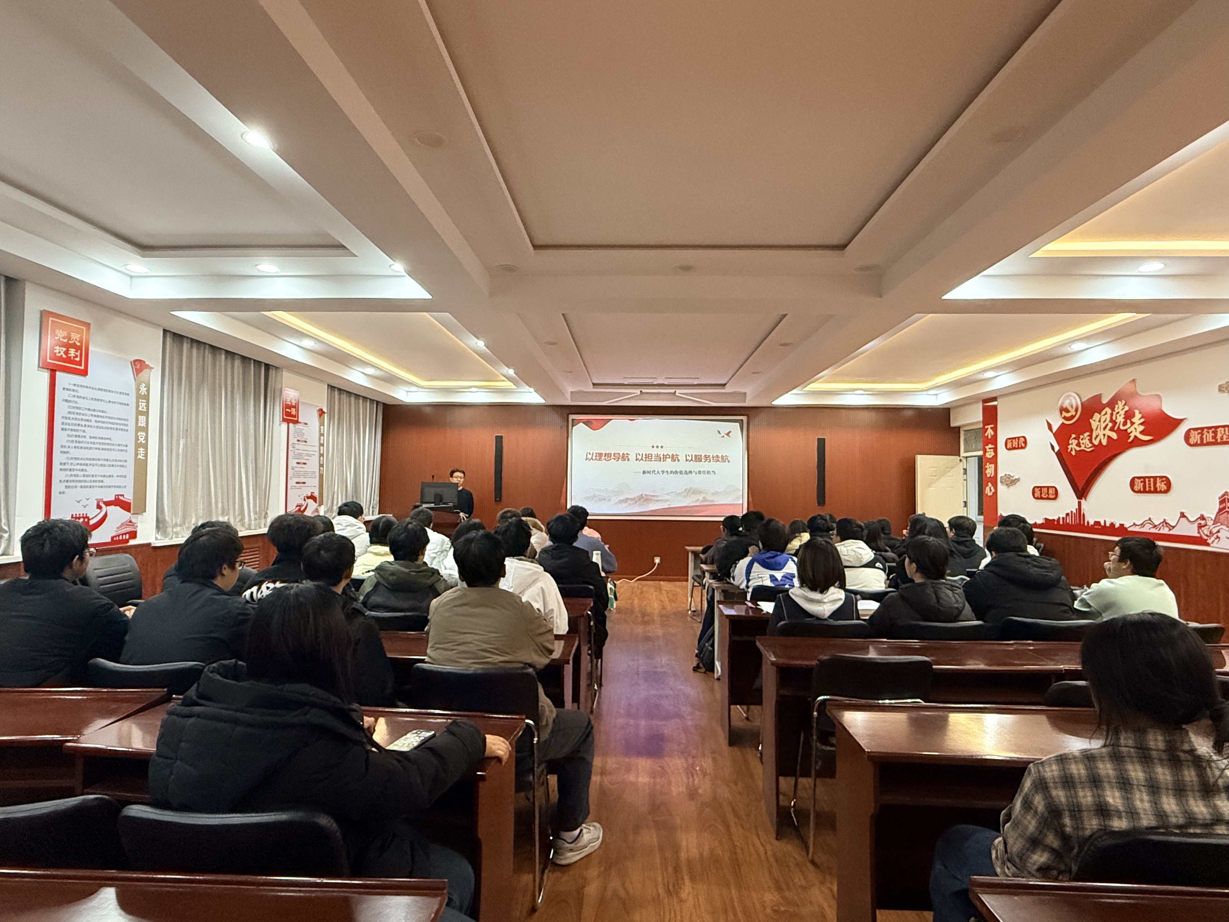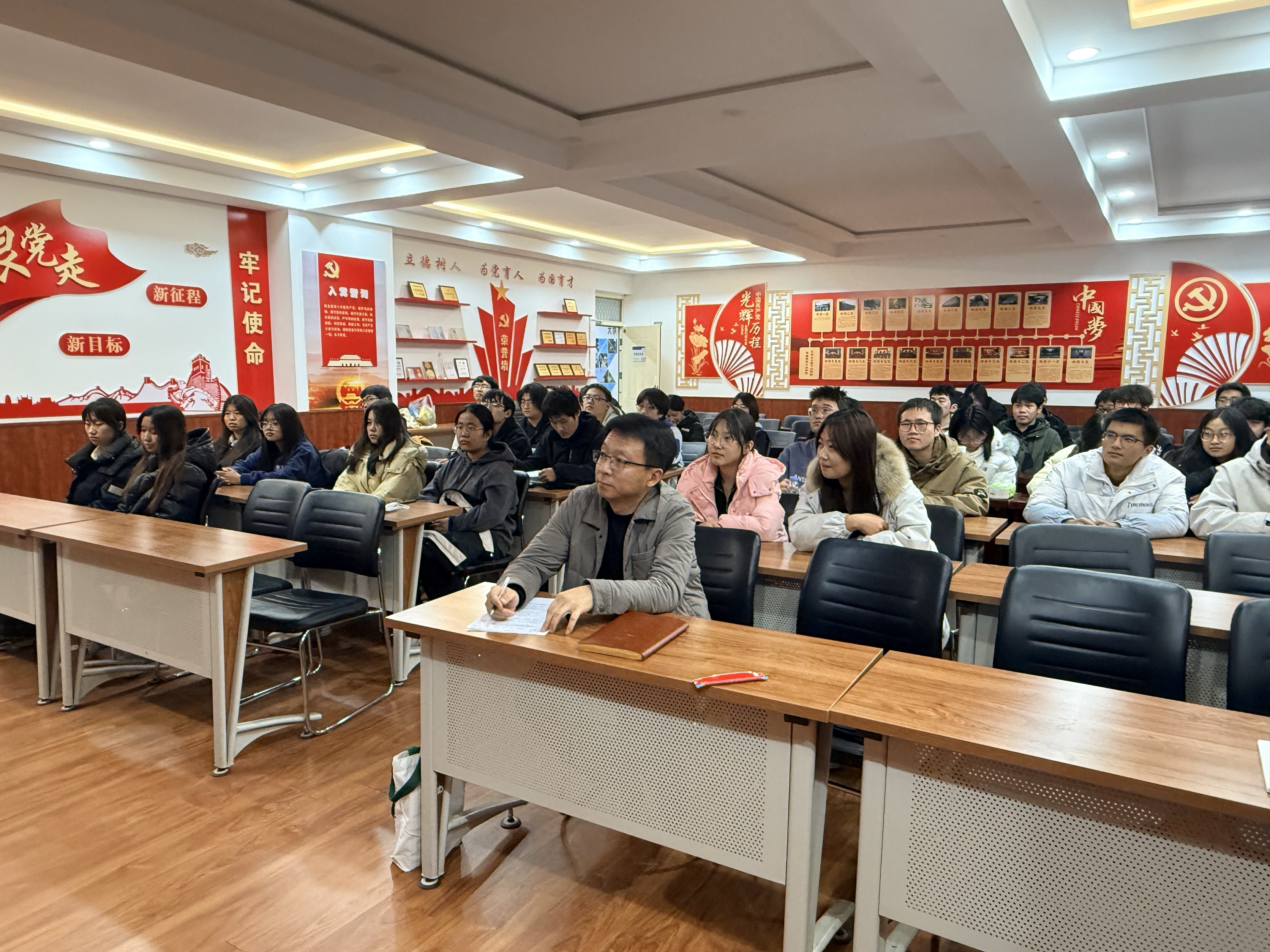 2025年11月19日晚,2024级信息与计算科学1班在宁远楼213会议室召开“铸魂强党性,青春践初心——大学生社会价值观培育”主题班会。校党委组织部副部长张惠、班主任岳靖及全班学生参加。