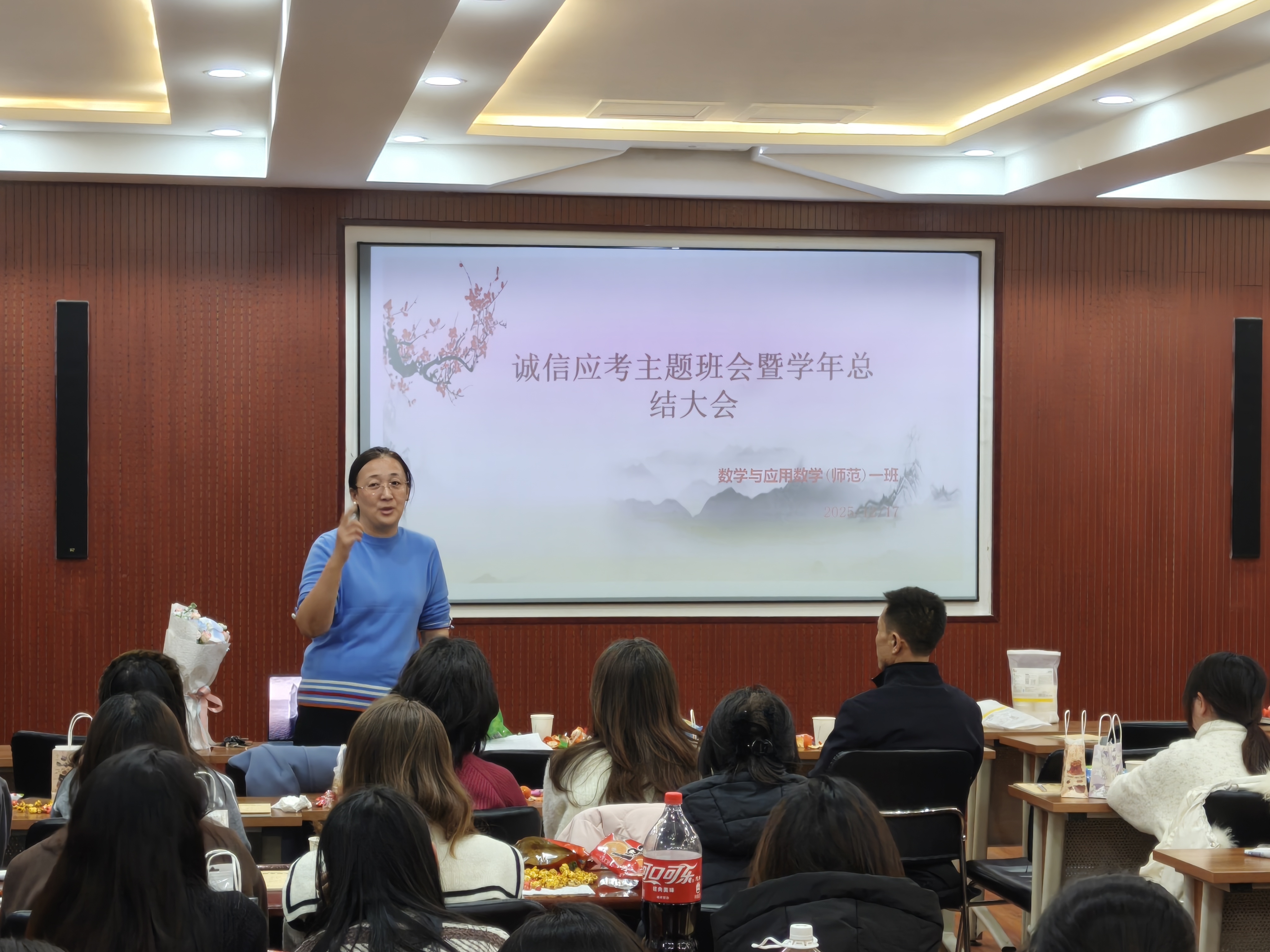 2025年12月18日,数学统计学院2023级数学与应用数学(师范)1班在宁远楼213教室举办“诚信应考暨学年总结”主题班会。求是书院党委副书记马彦峰、学院副院长马婧瑛、书院辅导员刘璐、班主任田芳及班级全体学生参加活动。
