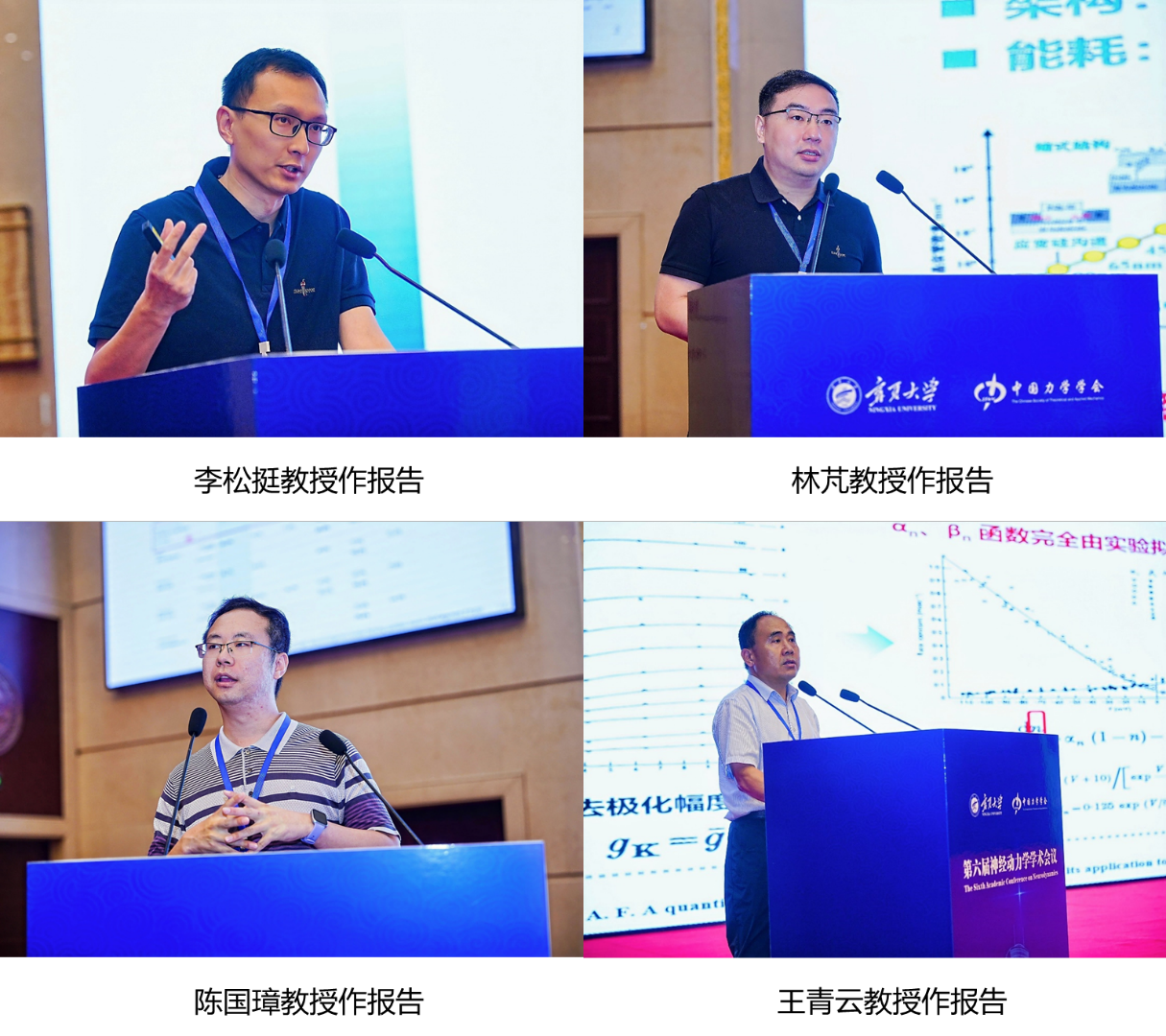 本次大会设立4个大会特邀报告。上海交通大学李松挺教授、浙江大学林芃教授、北京大学陈国璋教授以及宁夏大学/北京航空航天大学王青云教授应邀作了精彩的大会特邀报告。李松挺教授以“大脑网络中时间尺度结构与信号传播分析”为题,详细介绍了大尺度多脑区的网络动力学模型的理论基础和构建过程,揭示了时间尺度层级结构的数学机制。林芃教授以“动态忆阻神经网络与集成系统”为题,介绍了面向动态忆阻神经网络设计与集成系统构建方面的一些研究成果,并展望了硬件网络动力学特性以及高效网络部署的发展趋势与前沿方向。陈国璋教授以“皮层微环路与人工神经网络在计算相关特征方面的特性差异”为题,介绍了皮层微环路在稀疏序列放电与关键神经元路径控制上的独特机制,为低功耗类脑芯片设计奠定理论基础。王青云教授以“神经动力学与生物智能”为题,深入解析了生物智能“感知—决策—执行”一体化过程的动力学框架,为构建具备自主预测能力的下一代类脑控制系统提供了理论支撑。